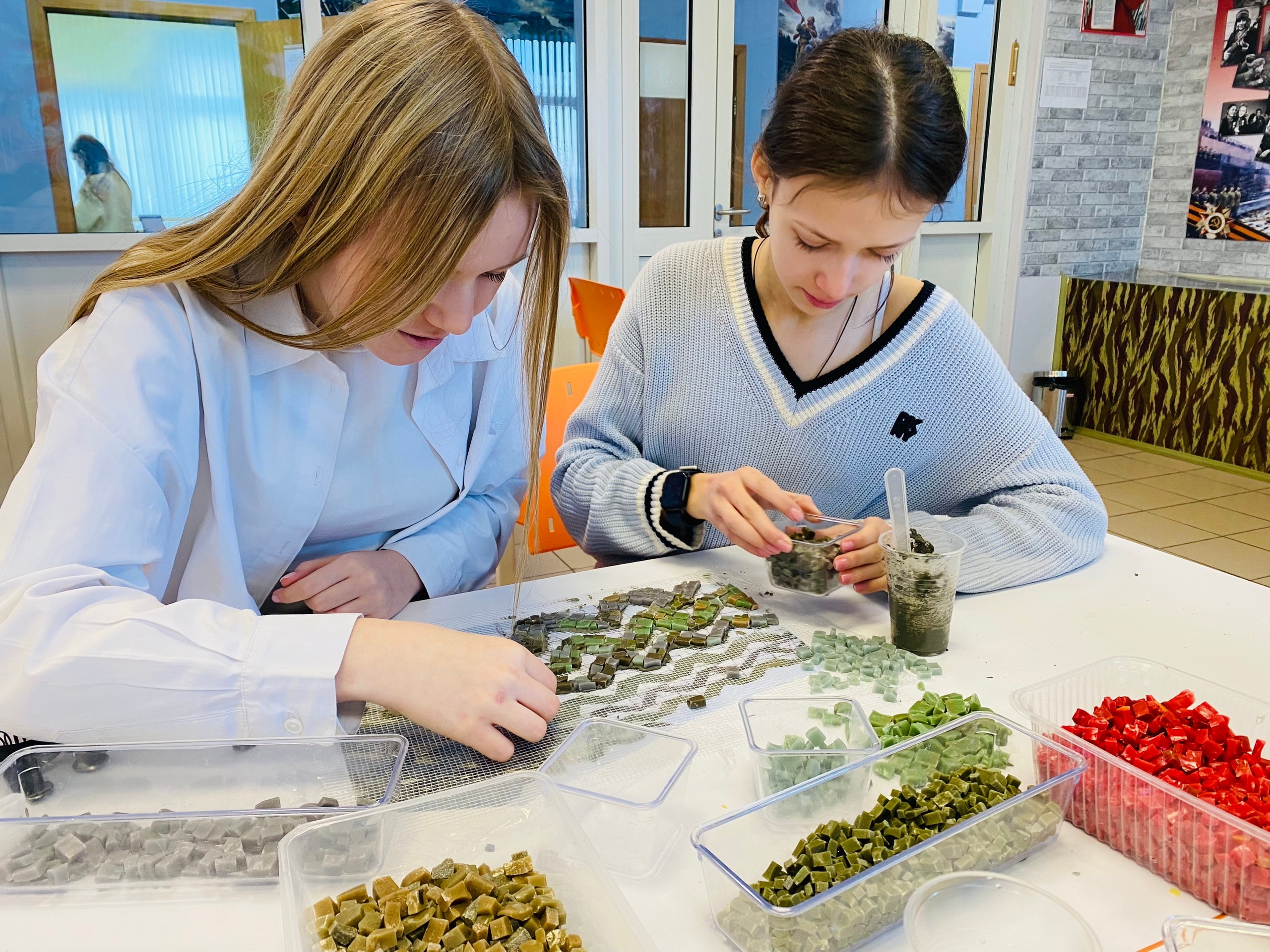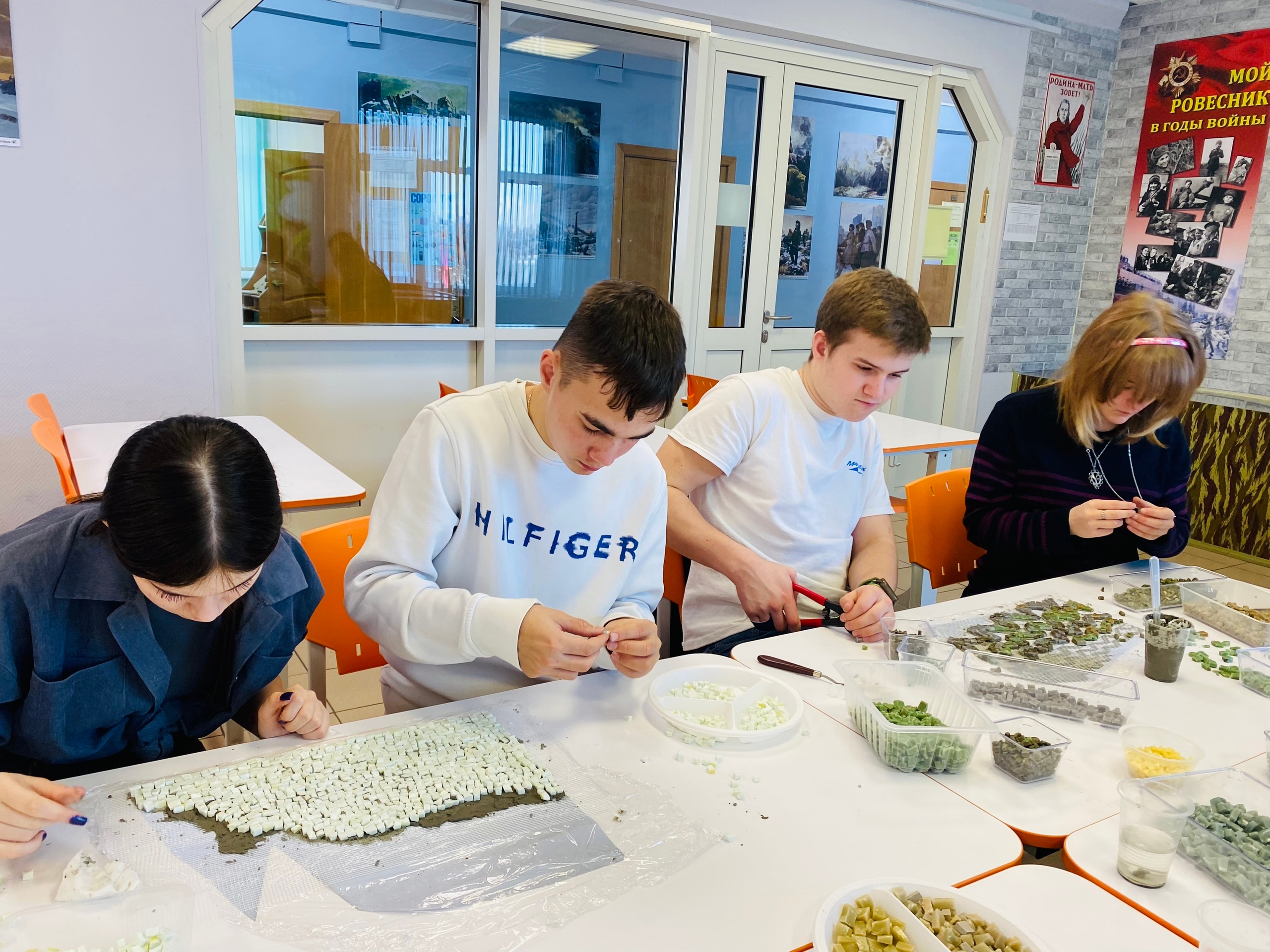 Творческие мастер-классы продолжаются в ГБОУ Школа 1747. Все новые и новые ребята присоединяются к нашему проекту «Мозаика Памяти». Старшеклассникам особенно интересно попробовать себя в качестве мозаичиста. Творческая профориентация в деле!